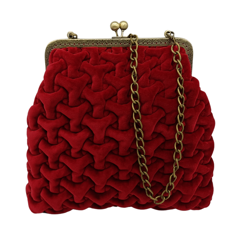 La borsa è realizzata in velluto imbottito e trapuntato effetto 3D,