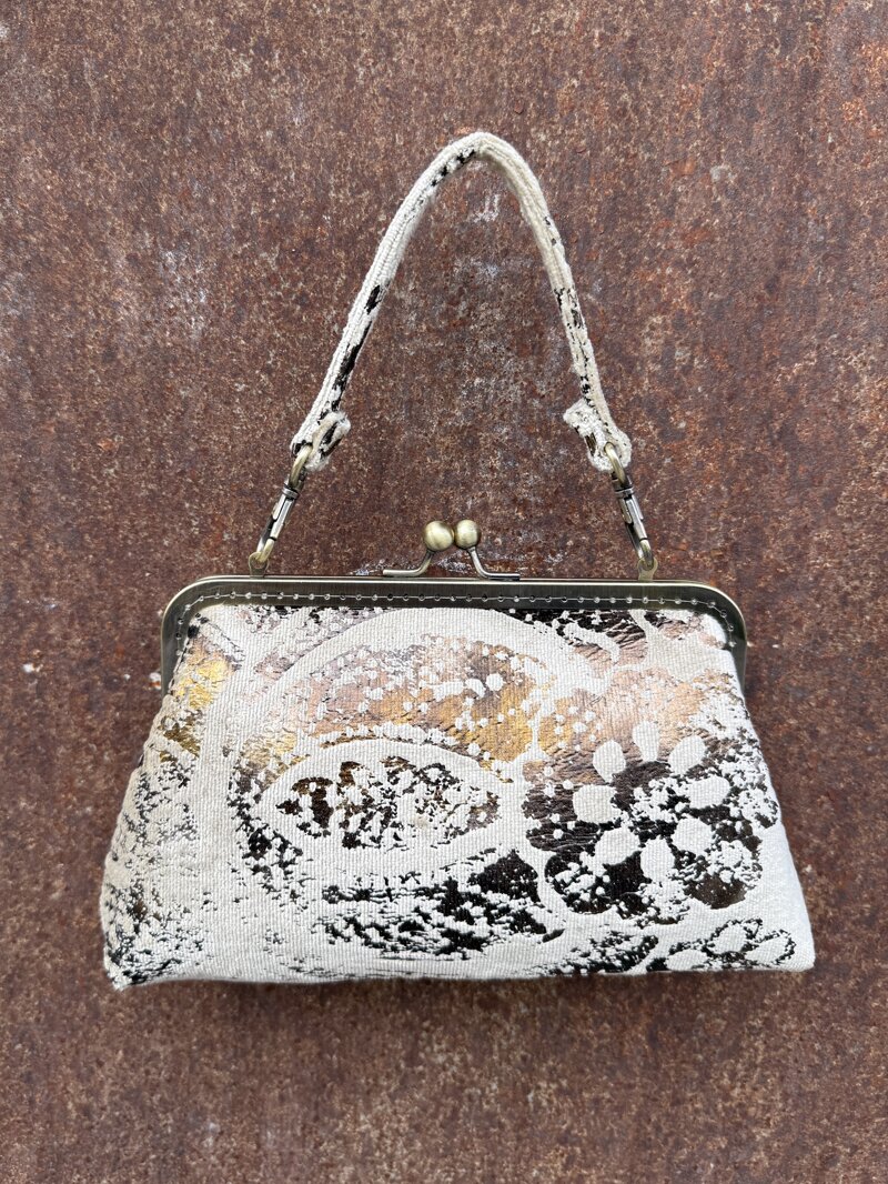I motivi floreali sembrano affiorare e scomparire a seconda di come la luce colpisce il velluto. È la borsa per chi ama l'eleganza e il fascino dell'inafferrabile.
